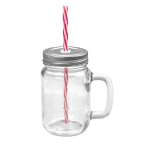 Caneca copo de vidro Mason Jars com tampa e canudo
