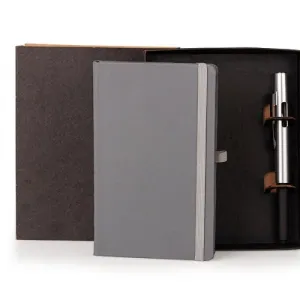 CADERNETA PARA ANOTAÇÕES COM CANETA - CINZA